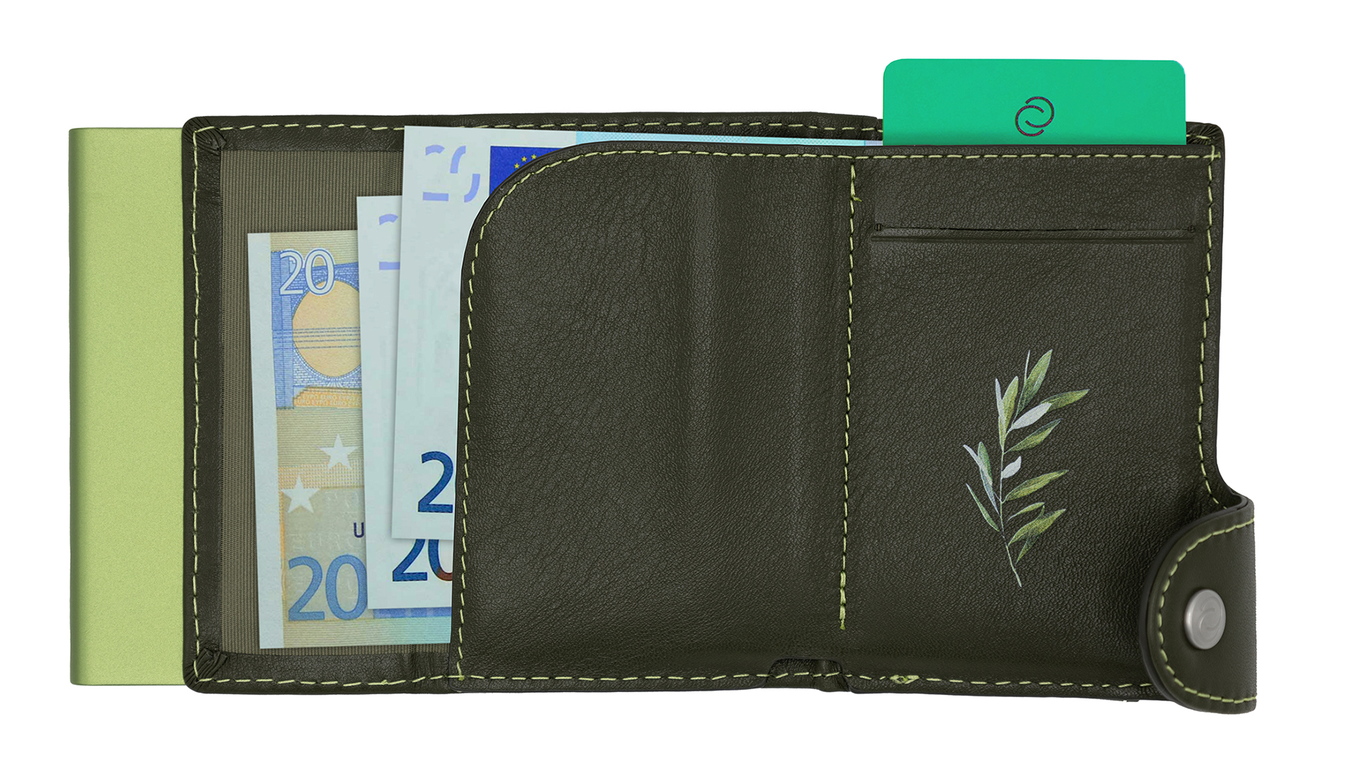 • Stores and protects: 4 to 7 cards, business cards, paper money