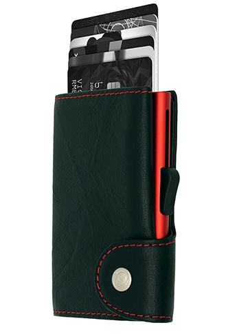 All single wallets are equipped with out patented mechanism that provides easy access to your cards.